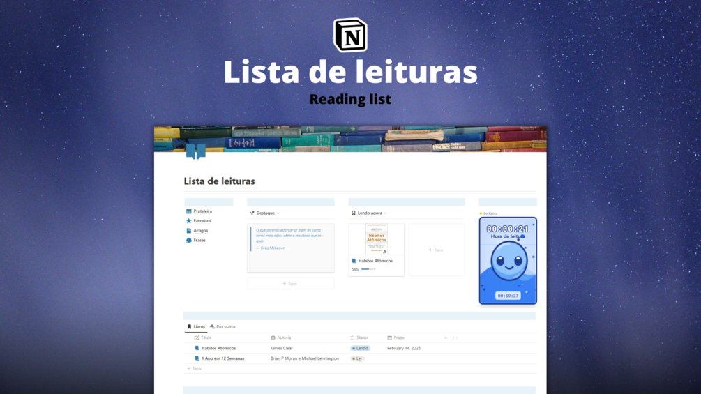 📚 Este template é a ferramenta perfeita para quem está procurando um método simples para organizar a sua lista de leituras.